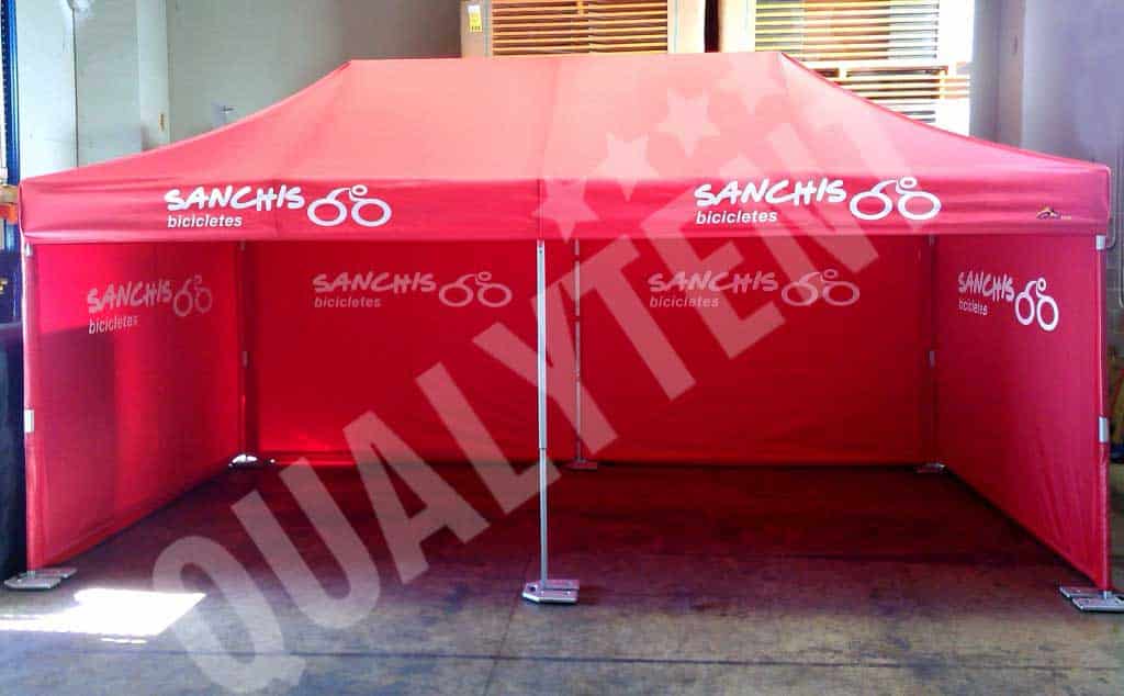 Para a empresa Bicicletas Sanchís, de Valência, fizemos a entrega de uma tenda dobrável personalizada de 6x3m Premium. Na cor vermelha e com a rotulação dos seus logos, tanto no teto como nas paredes.