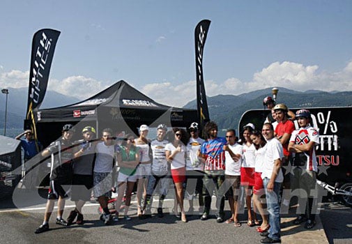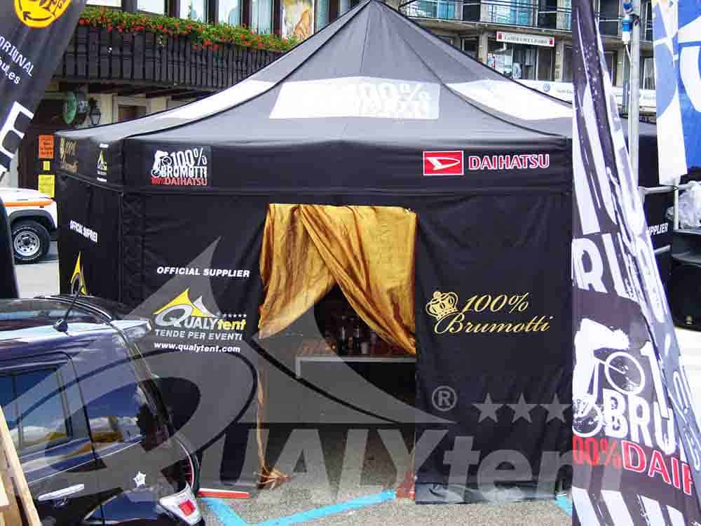 Tendas dobráveis profissionais de cor preta, que incluem a personalização da empresa desportiva italiana Brumotti.